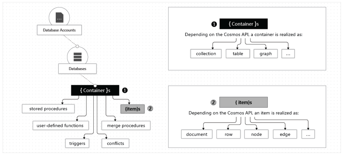 | Azure Cosmos DB Item | Item | Row | Document | Node or edge | Item |